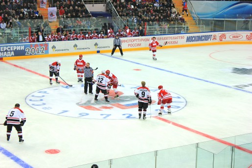 Just three members, Vladimir Lutchenko, Vladislav Tretiak and Alexander Yakushev, of the Russian team to play in the ’72 series played in Saturday’s game. Canadian great and NHL Hall of Famer Phil Esposito was the main attraction of the festivities, signing autographs throughout the first two periods though he did not participate in the game.