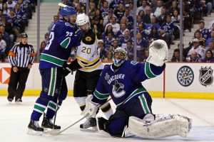 Boston’s power play once again failed them as they couldn’t take advantage of three early chances, including one 1:39 into the game when Raffi Torres tripped Greg Campbell. They didn’t mount much pressure and any shots that were on net were easily handled by a calmed down Roberto Luongo. He made 31 saves for his second 1-0 shutout of the series and was strong on every shot, never looking out of position. This is the second time he has showed tremendous bounce-back ability in these playoffs. After two bad games against Chicago in which he allowed 10 goals and didn’t start Game 6, he made 31 stops in a 2-1 overtime win in Game 7. He certainly has the focus and determination needed to out-duel the red-hot Tim Thomas.