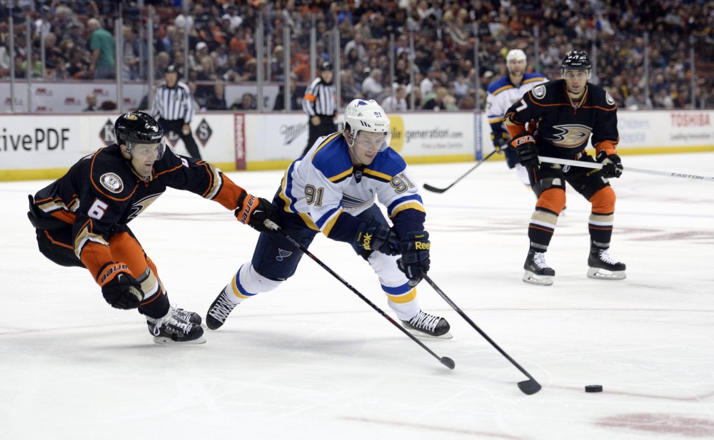 This weekend, the Blues lost forward Paul Stastny to an injury on Saturday against the Arizona Coyotes and fellow center Jori Lehtera was sidelined with the flu for Sunday’s contest. On the team’s second game of the back-to-back, Magnus Paajarvi and Chris Porter stepped in for the MIA forwards, while Petteri Lindbohm made his NHL debut on defense in place of Jordan Leopold, who was a healthy scratch. The result was a game that saw the Ducks stay “a step ahead,” according to Hitchcock.