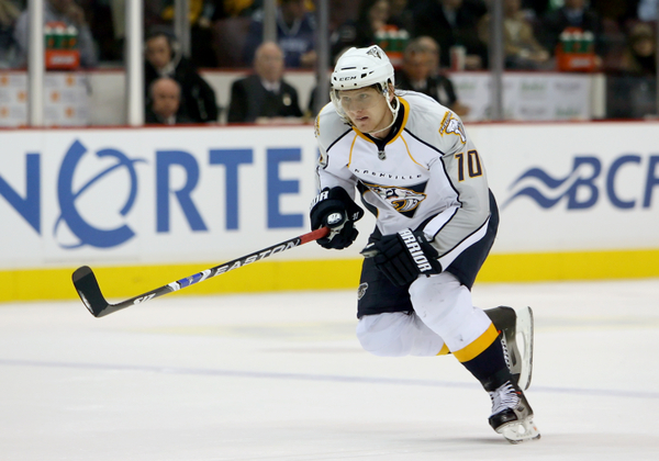 Martin Erat (Icon SMI) over Nashville with the Preds for sale. In the three years since then, Erat has had seasons of 50, 49, and 50 points, mostly because he has had a difficult time staying healthy, playing 71, 74, and 64 games in that three year stretch. Last season’s 50 points in 64 games is actually a pretty impressive number, but as Erat enters the fourth year of his contract (his most expensive, as he’ll earn $6 million), expectations for Czech Republic native remain high. If Erat stays healthy, I could see him having a career year, but based on his track record, that’s a pretty big “if”.