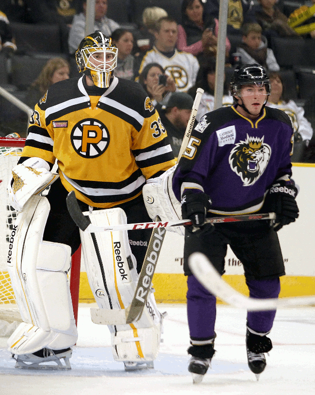 Friday night, Providence Bruins goaltender Michael Hutchinson took home his fourth ‘L’ of the season in the Baby B’s 3-2 loss to the Worcester Sharks at the Dunk.