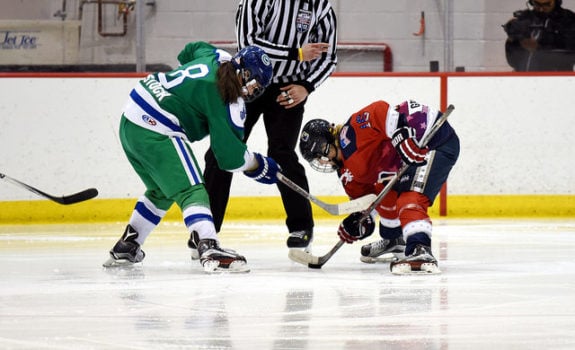 AG: Yes, it was a bit of a surprise at first, but then I began to embrace it as being an important part of my play. As the season went on I approached each face-off with more confidence — that I was going to win it, and this confidence seemed to help me get more wins than losses. There were times when (coach) Chad (Wiseman) would quickly throw me out on the ice solely to win a face-off, so this added a little pressure but also gave me an important role for the team. I would try to practice taking draws with our other centers after practice on Thursdays in order to get some face-offs in before the weekend game. Practicing face-offs with (Janine) Weber was always a challenge because she’s super strong so we would battle it out, which was good practice; my hands would be sore afterward haha!