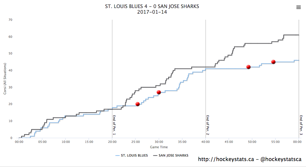 The Blues evidently did not want to do much with the ensuing five-minute power play — St. Louis took two minor penalties, eliminating a chunk of the major penalty. The Sharks killed off the remaining two minutes once all the penalties expired with just under four minutes left in the period.