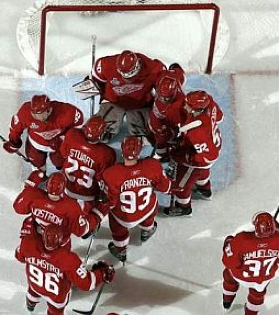 Within seconds, equipment is scattered all over the ice, the Red Wings players trap their goaltender under a pile of bodies in celebration, and the Pittsburgh crowd is left in stunned silence to wonder, “What happened?”