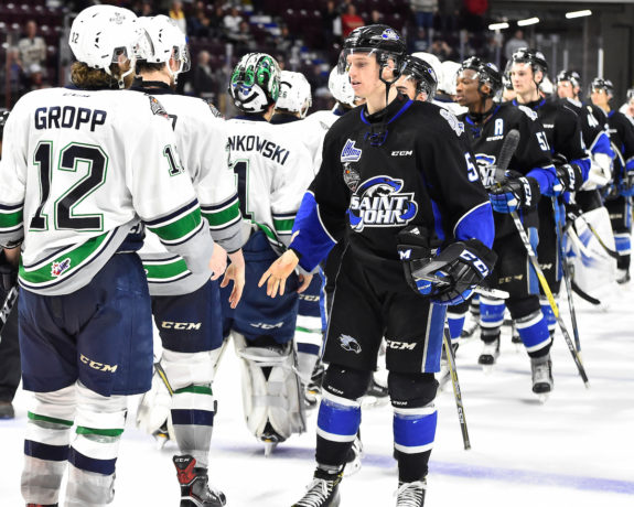 Seattle didn’t back down, though. Most of the second period was back-and-forth hockey with Stankowski and Booth shutting the door for their clubs. Until the 14-minute mark, that is. Stankowski sprawled in the crease, but couldn’t stop a Chase Stewart shot from the slot, and Saint John had a 2-0 lead at 14:04. Mathieu Joseph and Spencer Smallman would score within 53-seconds of Stewart and suddenly it’s a 4-0 Sea Dogs lead.