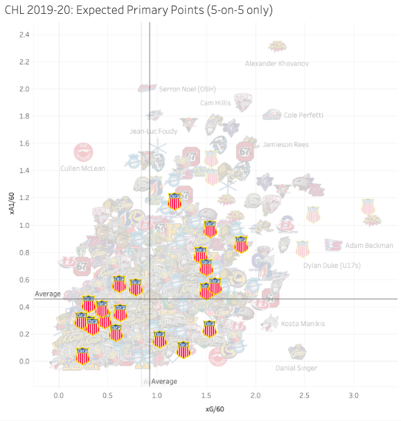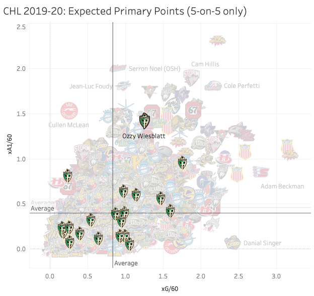 It seems pretty clear Wiesblatt can be at least an energy line player in the NHL, but there are questions as to his offensive upside. According to the expected primary assists and expected goals per 60 minutes by Brown, Wiesblatt seems to be one of the best playmakers in the Canadian Hockey League (CHL). He is in the same expected primary points part range as Dawson Mercer, Tyson Foerster, and Jake Neighbors, all of whom were taken in the first round of the 2020 Draft. While his goal production may be slightly underwhelming, he is a good dual threat to score or set up his teammates.