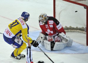 Switzerland were finally considered favorites for a game and did not disappoint against a decent Latvia line-up. Forwards Gaëtan Haas and Christoph Bertschy, who play for Biel and Bern in the Swiss NLA respectively, scored two goals each with Christian Marti of the Kloten Flyers scoring a single in a 5-3 victory. Goaltender Tim Wolf had a strong game as GCK teammate Lukas Meili did against the Swedes, a goaltending duel which should provide plenty of controversy on who gets to start the next game against Slovakia.