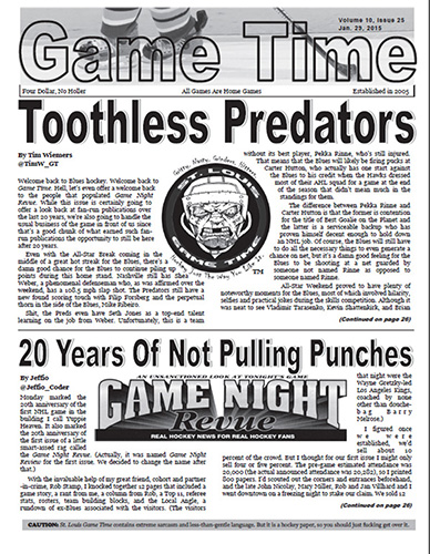 They’re not the only ones. Over the past 20 years, fans have referred to the publication, whether it was Game Night Revue or St. Louis Game Time, to enjoy a laugh, acquire insight or simply read something that is completely unique from the writing they are seeing in the mainstream papers and on the web.