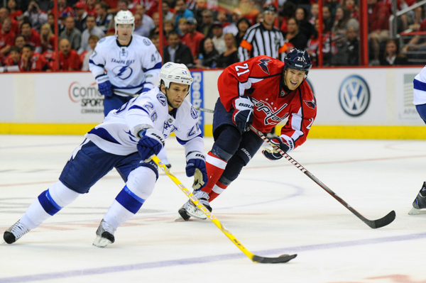 But when Teddy Purcell tied the game three minutes later, the place exploded. At first, many thought rookie Brett Connolly had scored his first NHL goal with the tally, but the goal was ultimately credited to Purcell, who explained that he was “trying to hit Connolly backdoor and it got broken up.”