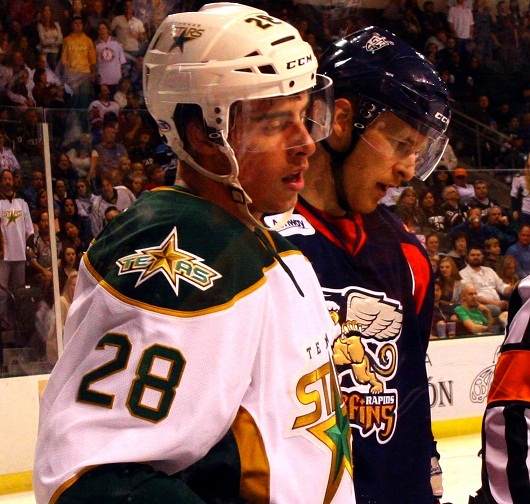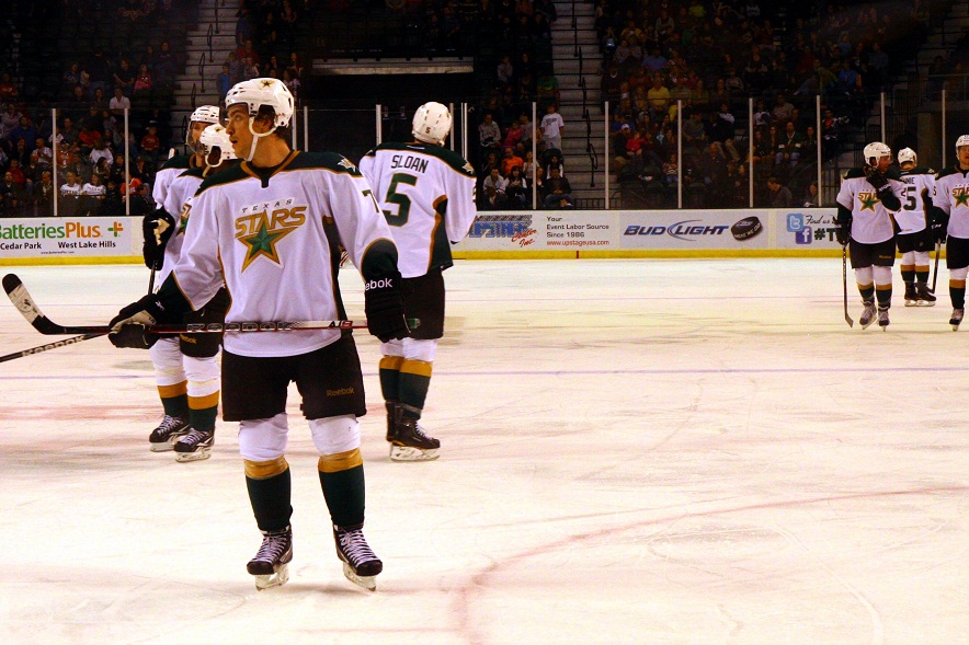 Colton Sceviour’s return from injury to play against Grand Rapids was a pleasant surprise. His goal from the top of the circle in the first period testified to what a great shot he has. A fan favorite, when Sceviour scored we had hope the night might go well. The Griffins dashed that hope just two minutes later. Yet even with Sceviour’s goal, Texas looked like a dysfunctional scratch squad with no real evidence of any coaching.