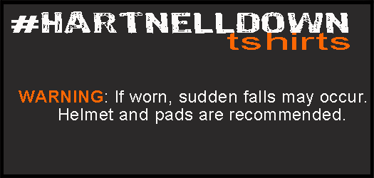 Another reason to follow the Philly crew is for Scott Hartnell’s HartnellDown clothing line. Hartnell keeps track of how many times he goes down for various reasons during games and we all celebrate it with t-shirts and toques! Genius. All the proceeds go to Scott’s foundation and it really is a cool innovative way for a player to raise money. Here was Hartnell’s tweet from last night’s game: