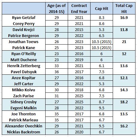 Do Getzlaf-Perry or Crosby-Malkin look that expensive anymore? Also, consider that even after Kopitar re-ups, he and Carter may still cost less than Ovechkin-Backstrom!