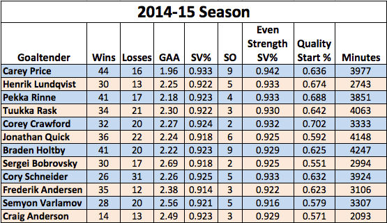 When hockey fans talk elite goaltenders, the obvious choice is Carey Price – and rightfully so. After that, it is a bit of a tossup, but a few of the goaltenders mentioned in particular are Henrik Lundqvist, Pekka Rinne, and Tuukka Rask. Even guys like Corey Crawford and Jonathan Quick are thrown into the mix due to their multiple Stanley Cup rings. All of these goaltenders are very good, yet being a member of the ‘elite’ category requires ridiculous numbers all across the board. Initially, I was going to write an article explaining why I thought Braden Holtby was an elite goaltender, but found it more fun (and interesting) to look at all of the numbers of some of the best netminders in hockey.