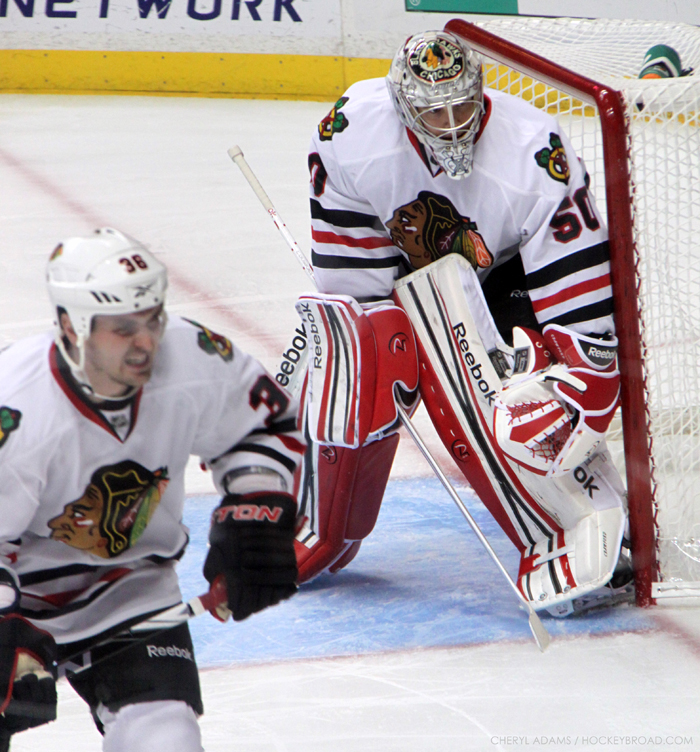 To say that it has been an eventful weekend for the Chicago Blackhawks would be an understatement. Not only have they had to sit through two banner raising ceremonies (Stanley Cup in LA, Pacific Champions in Phoenix), but they’ve also had to face down two of the game’s best goalies from a season ago, with Jonathan Quick and Mike Smith facing them between the pipes.