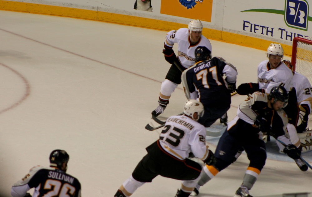 During second period, the Sullivan, Dumont and Geoffrion line placed the puck on the wrong side of Emery, as far as the Ducks were concerned. The success of this line shows what is oh, so right with Nashville this year. Trotz’s and Poile’s ability to find and develop talent and integrate it into the existing roster has played a huge role in the sucess of the franchise. Fisher and Beauchemin got minors for quibbles and The Wrong Blake got a goal.