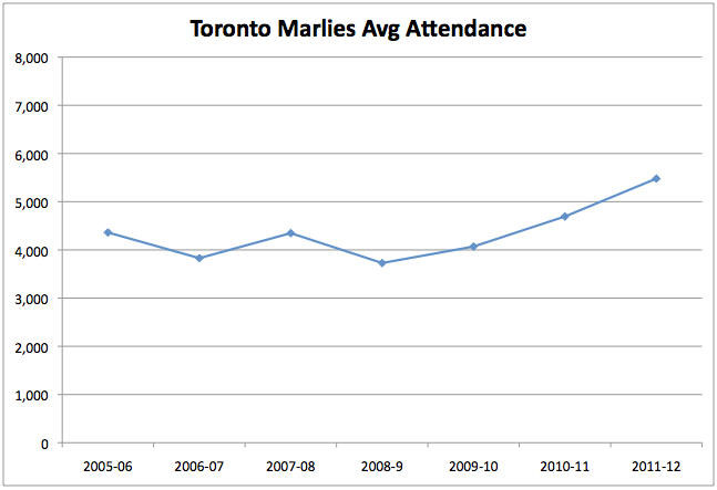 Year after year of the Marlies’ brief history has been witnessed by well below the league average number of fans, with thousands of empty seats at the 7,851-person capacity Ricoh Coliseum at game time.