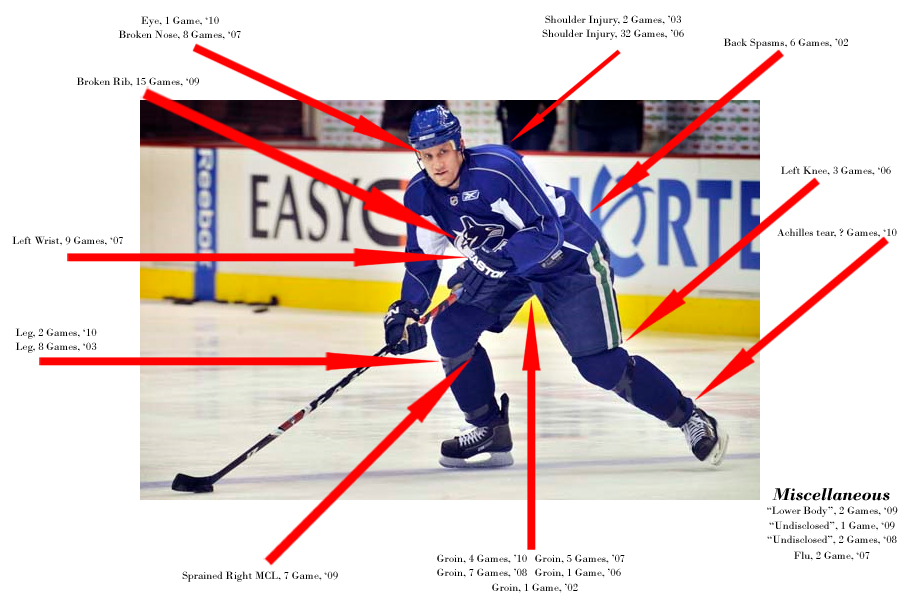 I’ll keep following regular-season injuries like always, and I’ve just started a series on the NHL’s biggest dirtbags based on a piece Down Goes Brown did for Grantland. What I’m hoping for in the future is a look at what kind of medical magic happens at the arena during games. This is mostly because I need an excuse to stare in complete fangirl admiration at the docs that can suture massive facial lacerations in the amount of time it takes for a commercial break to happen.